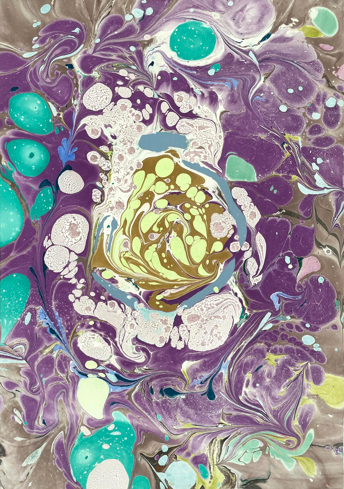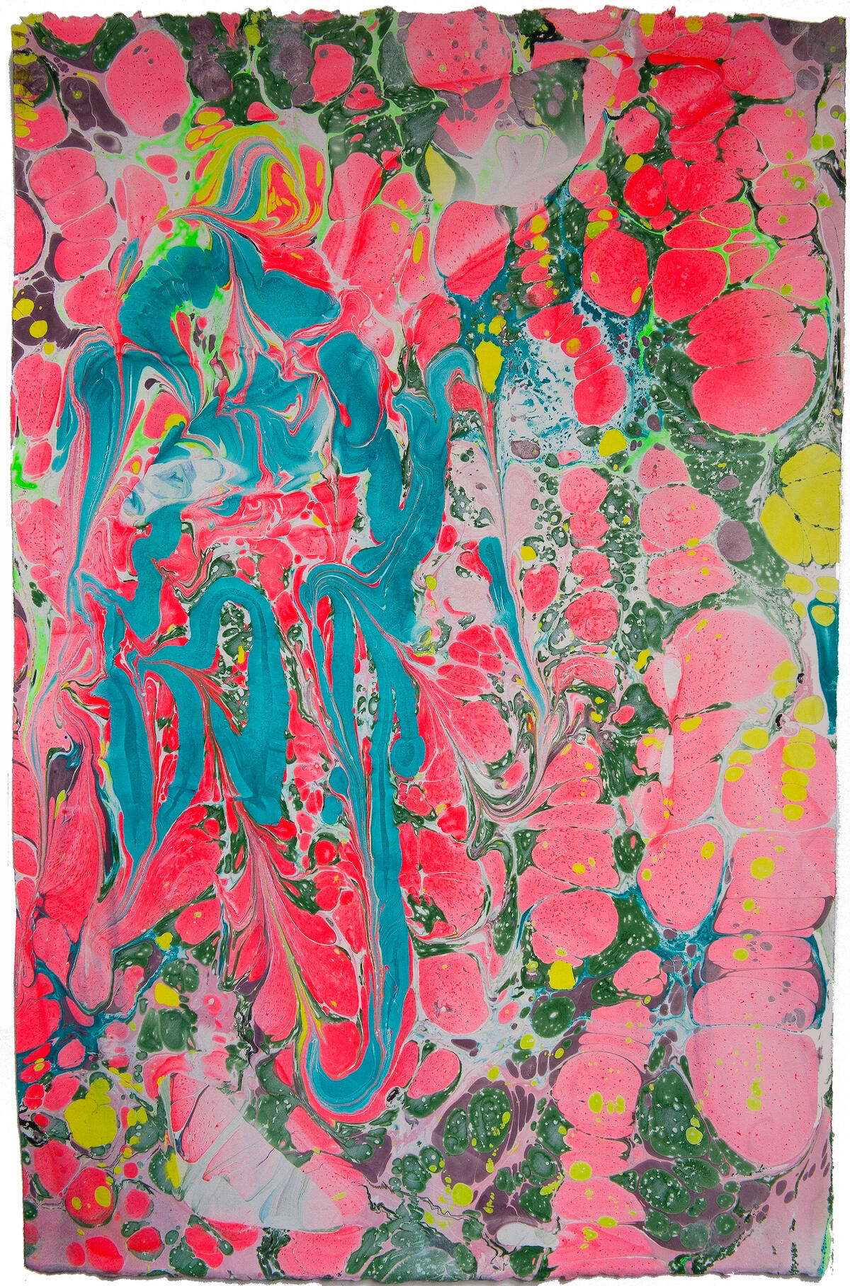 Deep Blue, hand-marbled paper, 24 x 15 inches