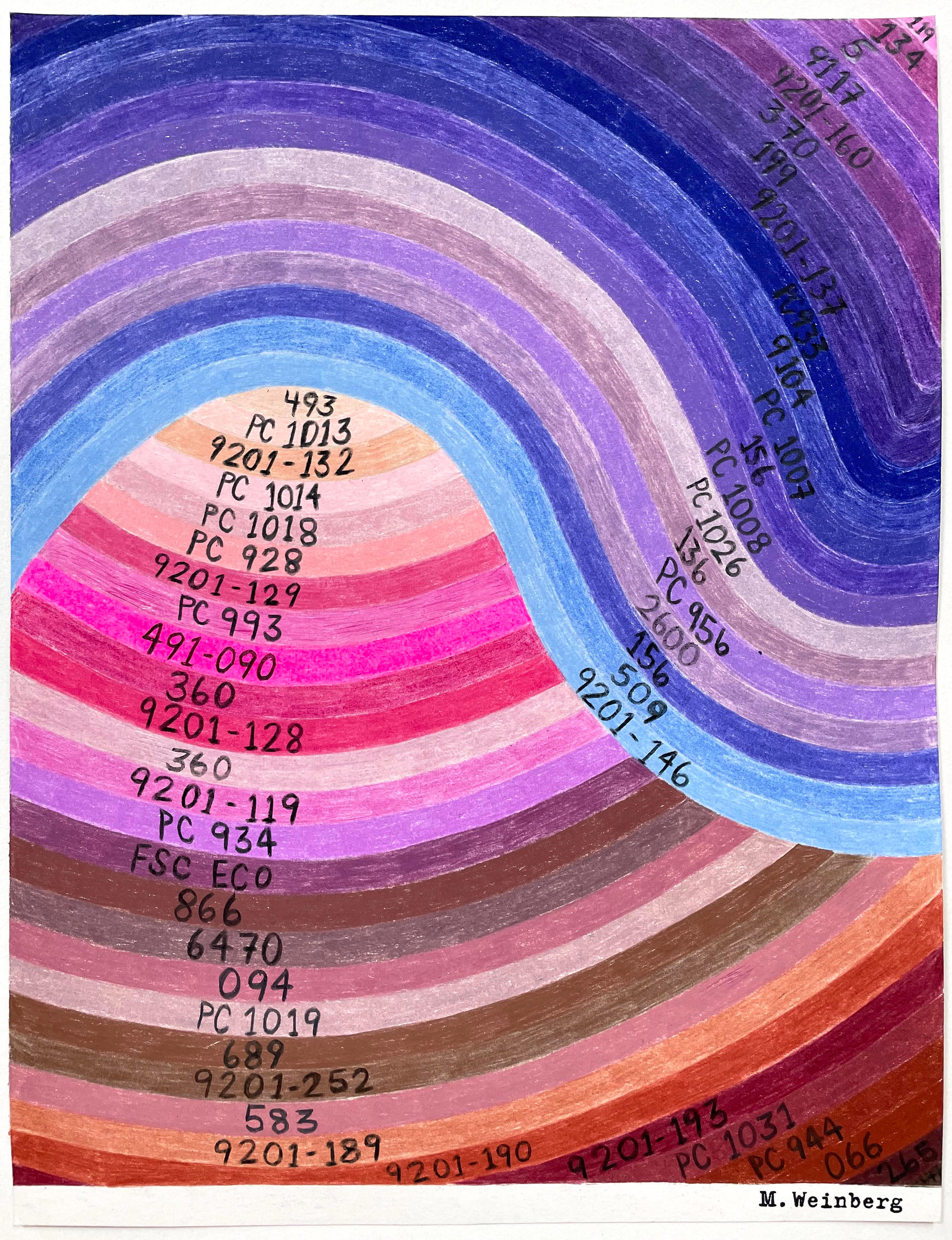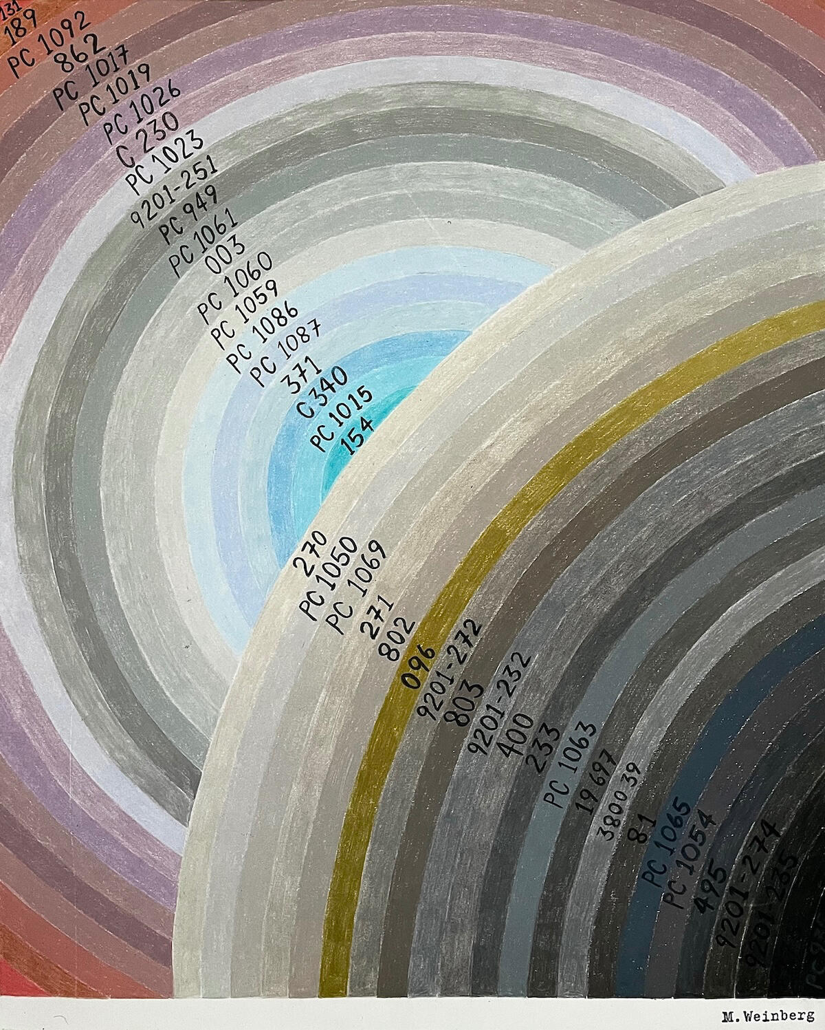 Michelle Weinberg works in drawing and painting, and she creates art for interiors, architecture and public spaces. She received her BFA from School of Visual Arts in NYC and her MFA from Tyler School of Art in Philadelphia. She is the recipient of awards, fellowships and residencies including an Adolph & Esther Gottlieb Foundation Award, a NYSCA Grant to Individual Artists, a NYSCA/NYFA Fellowship, residencies at Yaddo and MacDowell Colony, two Pollock-Krasner Foundation Awards (2016, 2025), a Lower East Side Printshop Keyholder Residency, Studios at MASS MoCA residency, a Joseph Robert Foundation Award, SouthArts, a Creative Learning Grant from the Lower Manhattan Cultural Council, a Wavemaker Grant from Cannonball Miami, a South Florida Cultural Consortium Fellowship in Visual and Media Art, an Individual Artist Fellowship and an Artist Enhancement Grant from the State of Florida, the National Foundation for Advancement in the Arts, 100 West Corsicana in TX, Millay Colony, the Fine Arts Work Center in Provincetown, homesession and Fundacion Valparaiso in Spain, and Altos de Chavon in the Dominican Republic.Exhibitions of her work include: a collaboration with Carini Lang Carpets in NYC, ArtBridge/Studio 502, NYC, Pulp Holyoke, Project: ARTspace, NYC, ArtPort Kingston, Fine Arts Work Center in Provincetown, Delaware Valley Arts Alliance, FIU Frost Art Museum, Schmidt Center Galleries, Florida Atlantic University, the Wolfsonian Museum, Emerson Dorsch Gallery and Dot FiftyOne Gallery in Miami, La Plataforma in Barcelona, The Hewitt Gallery at Marymount Manhattan College and ARENA by Renee Riccardo in NYC, The Bob Rauschenberg Gallery at Edison State College in Fort Myers, FL, The Schoolhouse Gallery in Provincetown, MA and Islip Art Museum, NY. Weinberg designs hand-knotted rugs, tiles and wall coverings inspired by her handmade marbled papers. Commissions include a 700 linear foot mural “River Semaphore” in Lower Manhattan produced by ArtBridge and partners including Battery Park City Authority, NYC Parks and Downtown Alliance, murals for The Wolfsonian Museum-FIU in Miami Beach, Facebook offices in Miami and Young at Art Museum in Dania, FL, public art projects for Miami-Dade County, Miami International Airport, City of Tampa, City of Pembroke Pines, Cultural Council of Jacksonville, and City of Hollywood, in FL.Weinberg has organized exhibitions and presentations of work by other artists, including “Artists Draw Their Studios” and “Cuts a Figure” via her platform Available Space. Weinberg is Creative Director of Girls’ Club in Fort Lauderdale, and a consultant to museums and non-profits, developing exhibitions, education programming and more. She is Co-Director of Project: ARTspace in NYC, a Lecturer at SUNY Purchase College and an Instructor at Marymount College.Read her response to One Question/One Answer at Romanov Grave.Her work may be found at White Columns Curated Artist Registry.Book a one-on-one session with Michelle in her studio at VAWAA.comphoto: Christine Harris