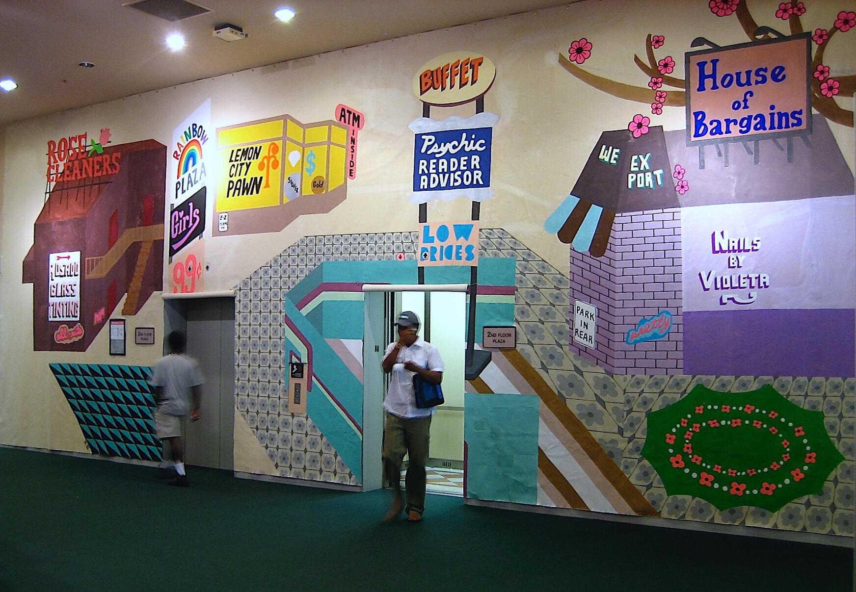 Intricate Pattern Overlay, Miami Beachpaint mural, Wolfsonian Museum